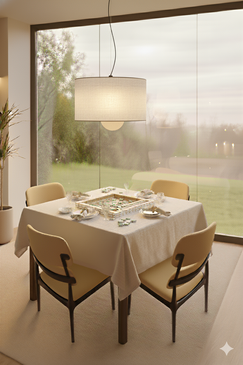 A holiday Mahjong night doesn’t need excess. Done right, it leans into calm luxury: pared-back decor, beautiful textures, and an atmosphere that invites people to linger.